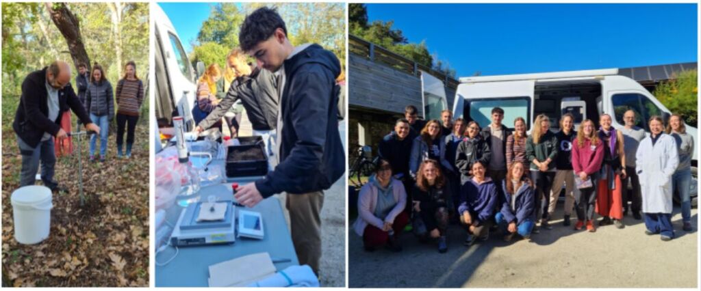 Les approches terrain ont notamment bénéficié du Lab-Mobile (installation Biochem-Env, INRAE) permettant aux participant·e·s d’étudier des échantillons de sol en allant du prélèvement à l’analyse d’activités enzymatiques in situ.